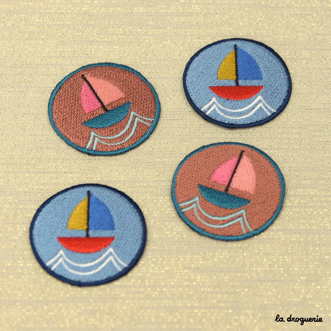 Écusson thermocollant brodé, de forme ronde avec un joli bateau sur la mer. Il existe dans 2 couleurs au choix. Un joli écusson que l’on porte sur une marinière, un tote bag, les vêtements de nos enfants… à l’abordage !