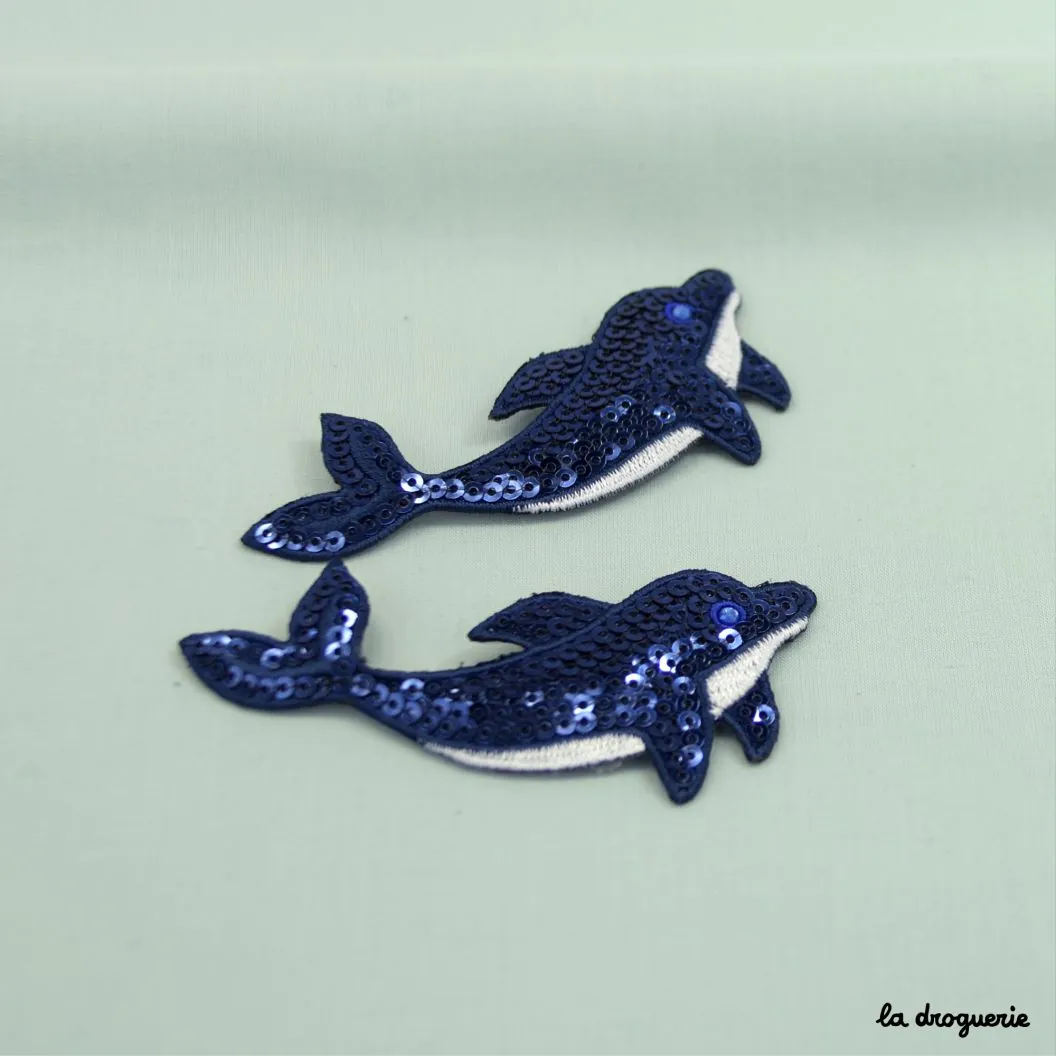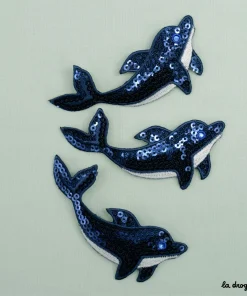 Un écusson en forme de dauphin, avec des paillettes pour une touche de brillance. On imagine déjà cet écusson sur des tee-shirts, des manteaux, des pulls et même sur nos tote-bags et nos sacs à dos.