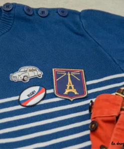 C’est un écusson réalisé à partir de nos propres dessins. On dessine la forme, on choisit la couleur, la matière, le type de broderie… On valide le prototype pour qu’il soit conforme à ce que nous avons imaginé. C’est donc une création exclusive de La Droguerie !