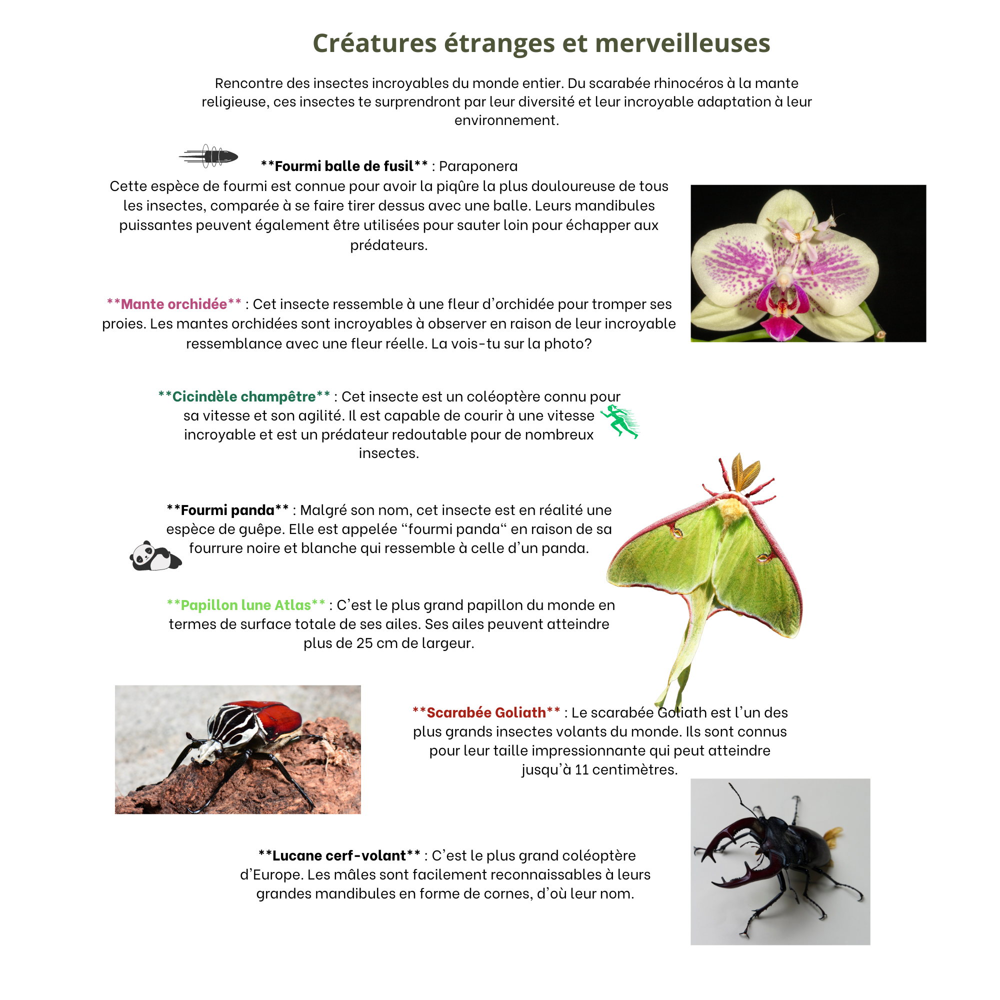 – Des informations détaillées sur les insectes et leur mode de vie.