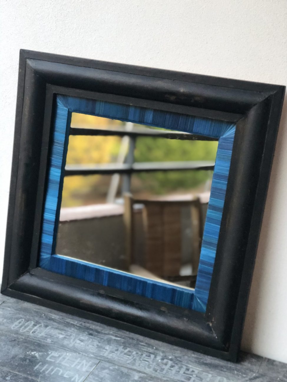 Miroir 28 x 28 cm encadré, baguette fait main carton bois et marqueterie de paille.