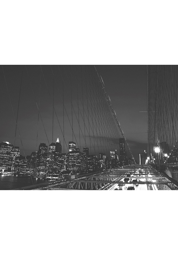 Affiche Pont de Brooklyn. Superbe poster de nuit en noir et blanc de New-York et ses gratte-ciels, avec vue sur le pont de Brooklyn, l’un des plus anciens des États-Unis, il traverse le détroit de l’East River et relie Manhattan à Brooklyn.