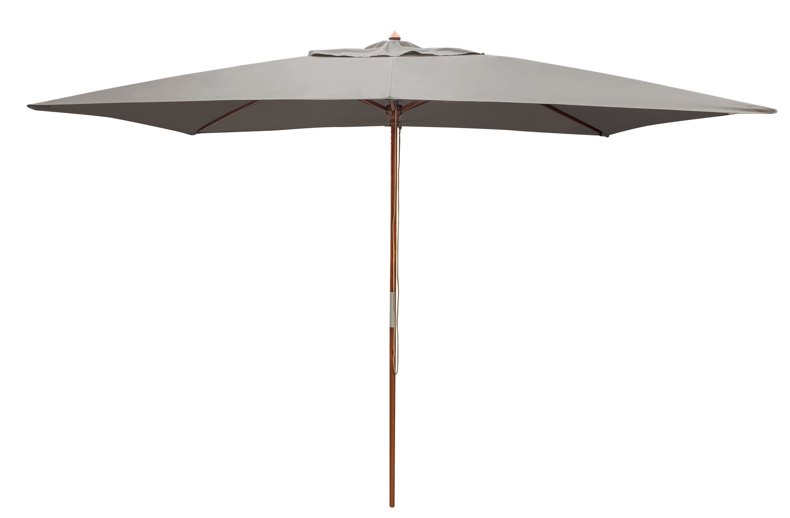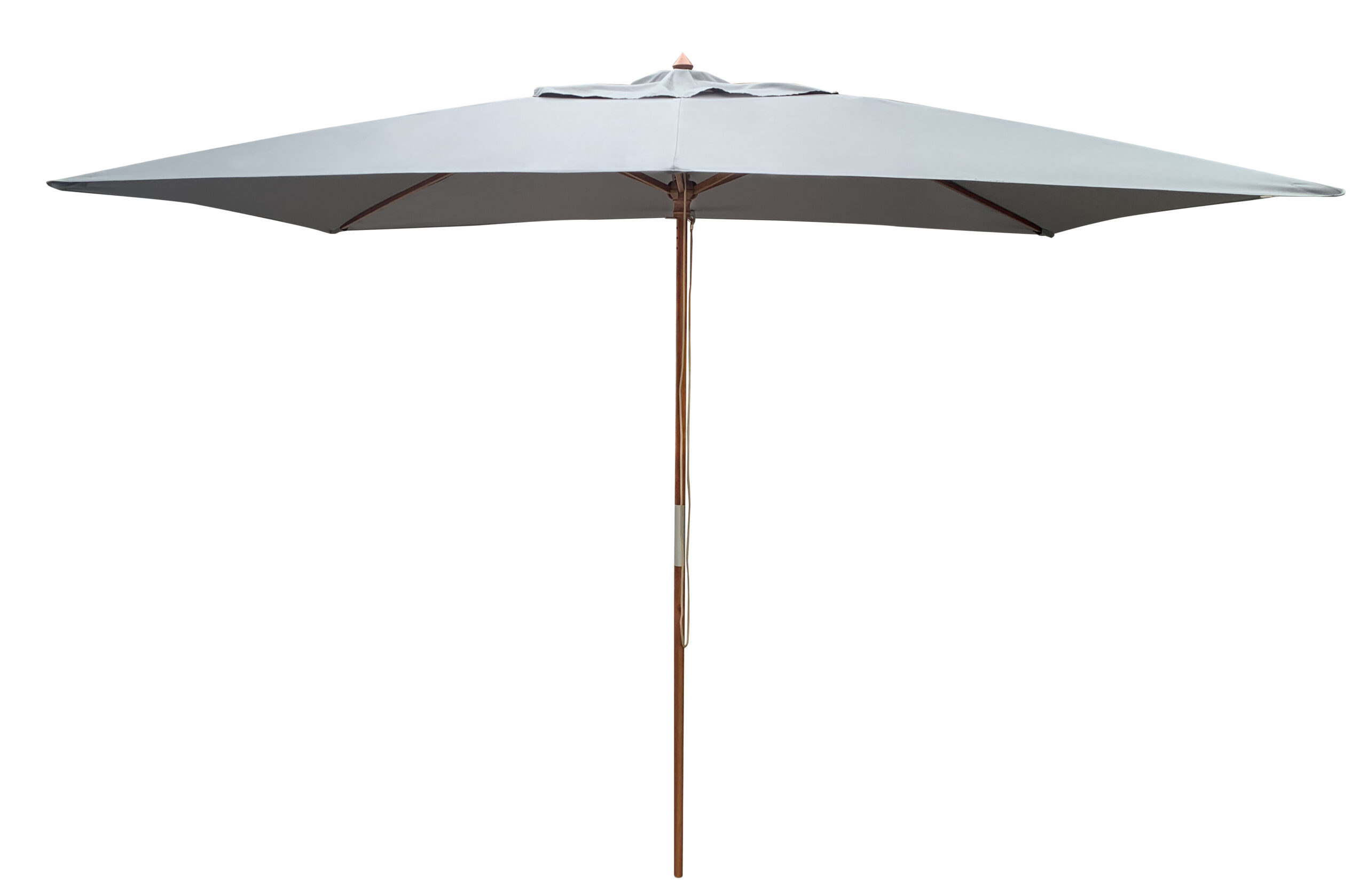 Le mât de 38 mm du parasol est en deux parties et permet l’ouverture de la toile à l’aide d’un cordon et 2 poulies ; il est associé à 6 baleines de 17 x 22 mm pour une très bonne résistance de son ensemble.