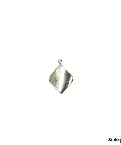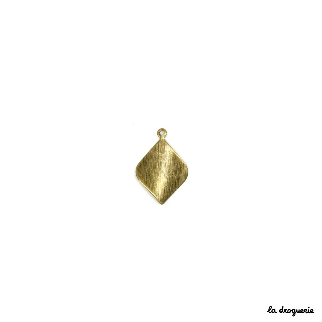 Cette pièce en forme de losange légèrement ondulée se suspend sur tous les bijoux grâce à son petit anneau. Elle est en métal cuivreux avec une finition brossée et cela lui donne toute son originalité.