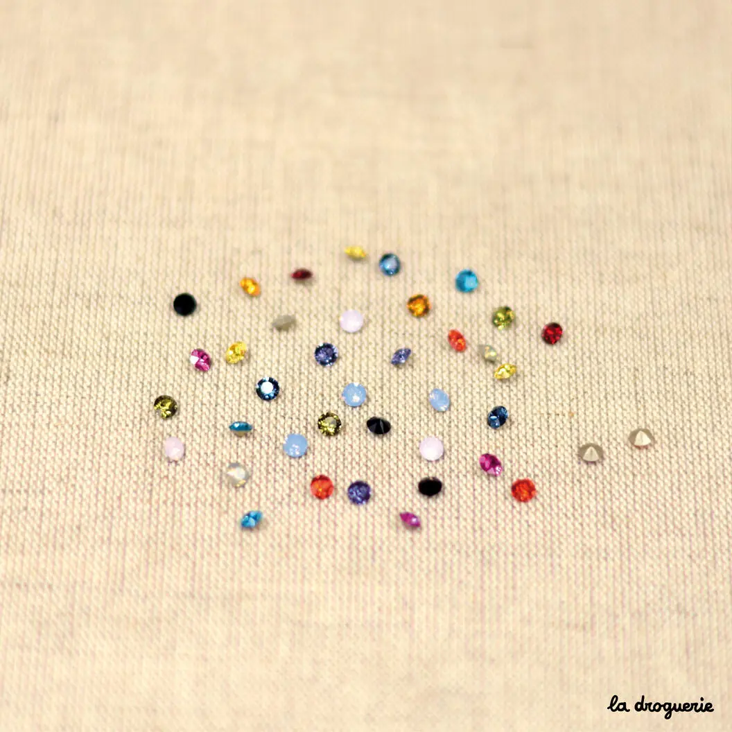 Strass chaton en forme de cône avec une face coloré et brillante. Il mesure 3,90 mm de diamètre. Il est en verre et est disponible dans 13 coloris. Strass fabriqué en Union européenne.