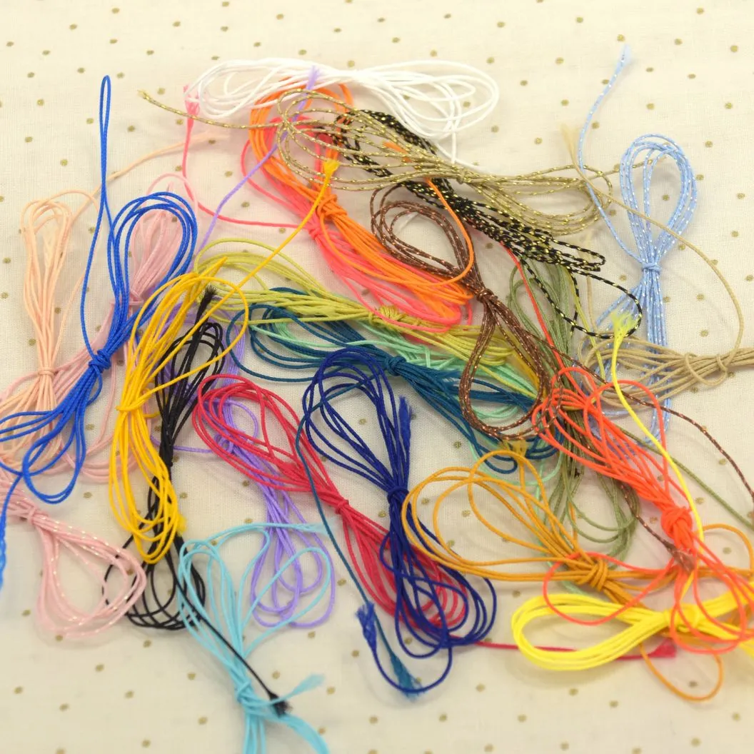 C’est un petit cordon très pratique pour la réalisation de bijoux. Vous pouvez enfiler des perles dessus. Vous pouvez vous amuser également à faire des nœuds, du macramé, y intégrer des breloques… Et selon la finition que vous souhaitez, comme notre petit cordonnet est en polyester vous pouvez même le brûler, pratique !