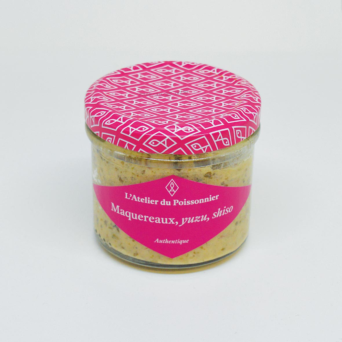 Ingrédients : filets de maquereau 51%, crème, yuzu 5%, shiso 3%, huile d’olive, sel, gélifiant (agar-agar). Traces possibles d’arêtes.