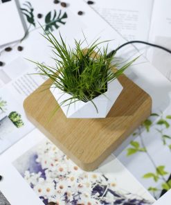 Vase en lévitation octogonal – base bois clair